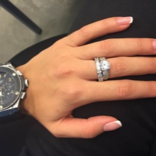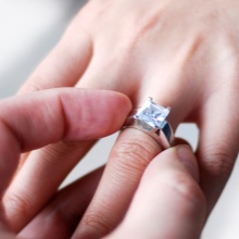 The stones on the rings can have different sizes. They look different on the ladies' hand. An important role is played by the age of the fashionable woman: