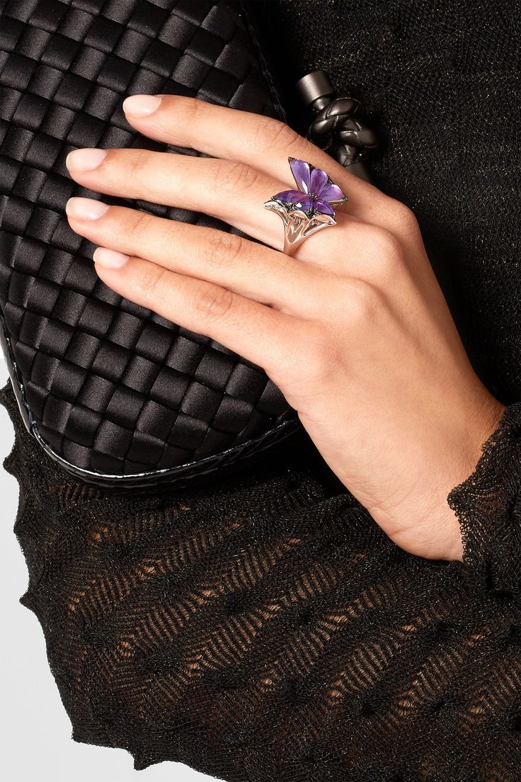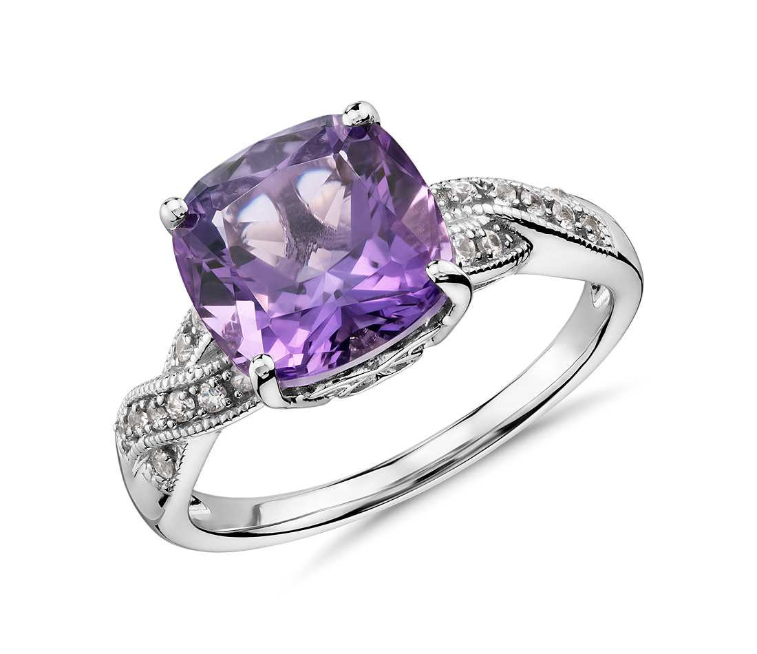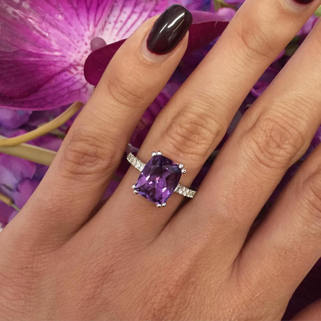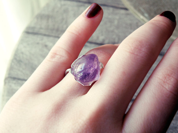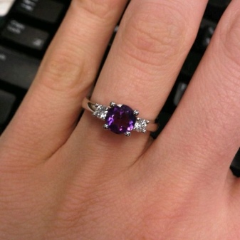 Products with amethyst look feminine and mysterious. This stone is the most expensive type of quartz. It can have many shades: from light purple to bright blue. Rings with such detail look just amazing.