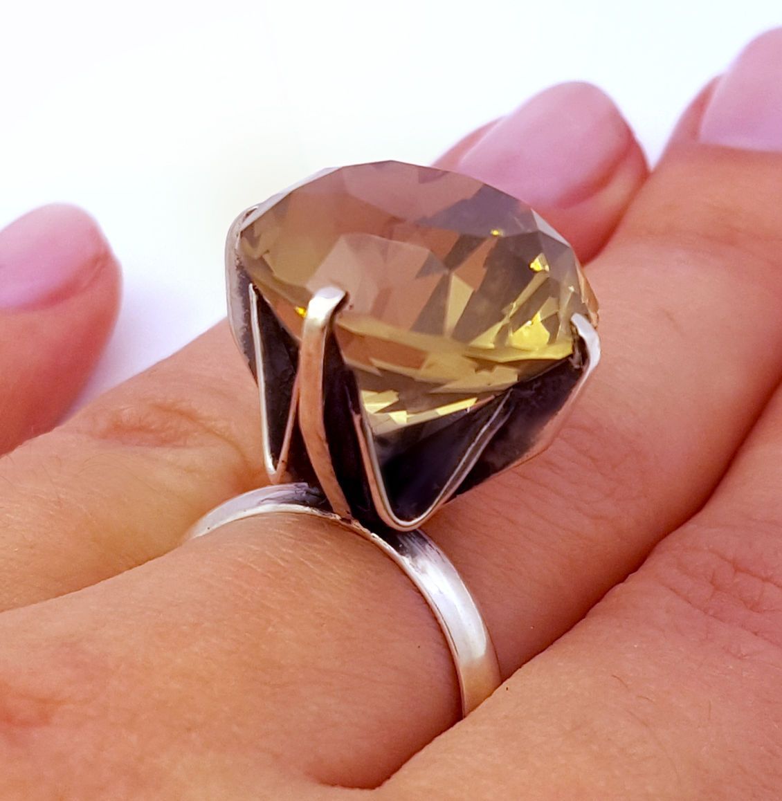 Yellow stone rings are ideal for positive and cheerful people. Such an attractive color will please the eye of a fashionista, and give her a great mood. Since ancient times it was believed that such minerals are symbols of good luck and wealth.