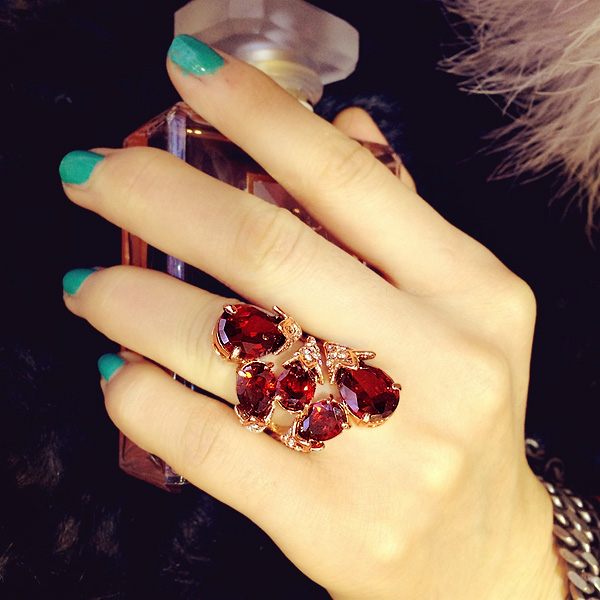 Sensual and passionate nature is ideal decoration with a red stone. The brightest and most popular are such stones as garnet or ruby. They are able to give the lady more confidence and make her image more sexual. Minerals of such a rich color look perfect in yellow or pink gold.