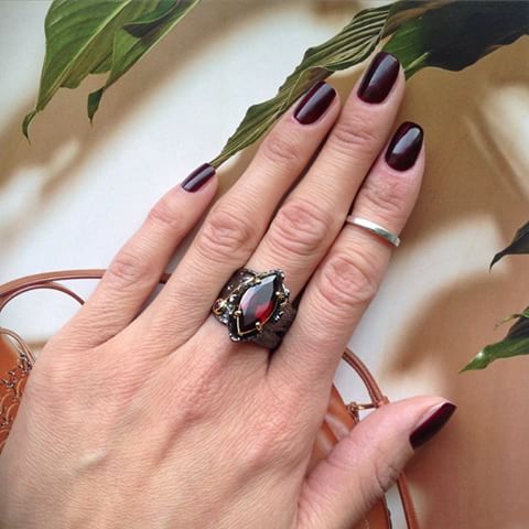 The most harmonious garnet looks in yellow gold or in nickel silver rings. It can be supplemented with other stones or Swarovski crystals.