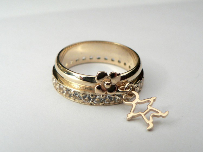 New trend of this season are exclusive rings with pendants. They will look great on a young girl. But such products are not very convenient, as they can cling to clothes or any other things.