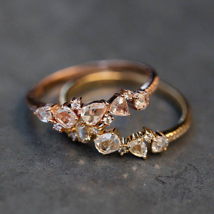 - Rings-bunches. Such models are distinguished by the presence of several pebbles combined into one composition.