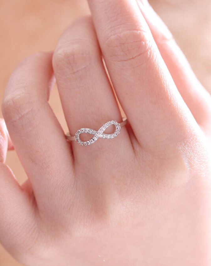 - Rings-infinity. In such products, stones are combined into groups and placed along the length of the entire rim of the decoration. Pebbles can be absolutely any: any shape, color and cut.