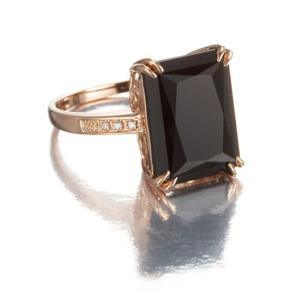 The main advantage of natural stones can be called their color. Today, rings with colored minerals are at the peak of popularity, and women of fashion cannot just pass by such jewelry.Rings with black onyx or agate look solid. Silver, white gold or platinum look best with a dark stone. The contrasting transition makes the mineral more expressive and noticeable.