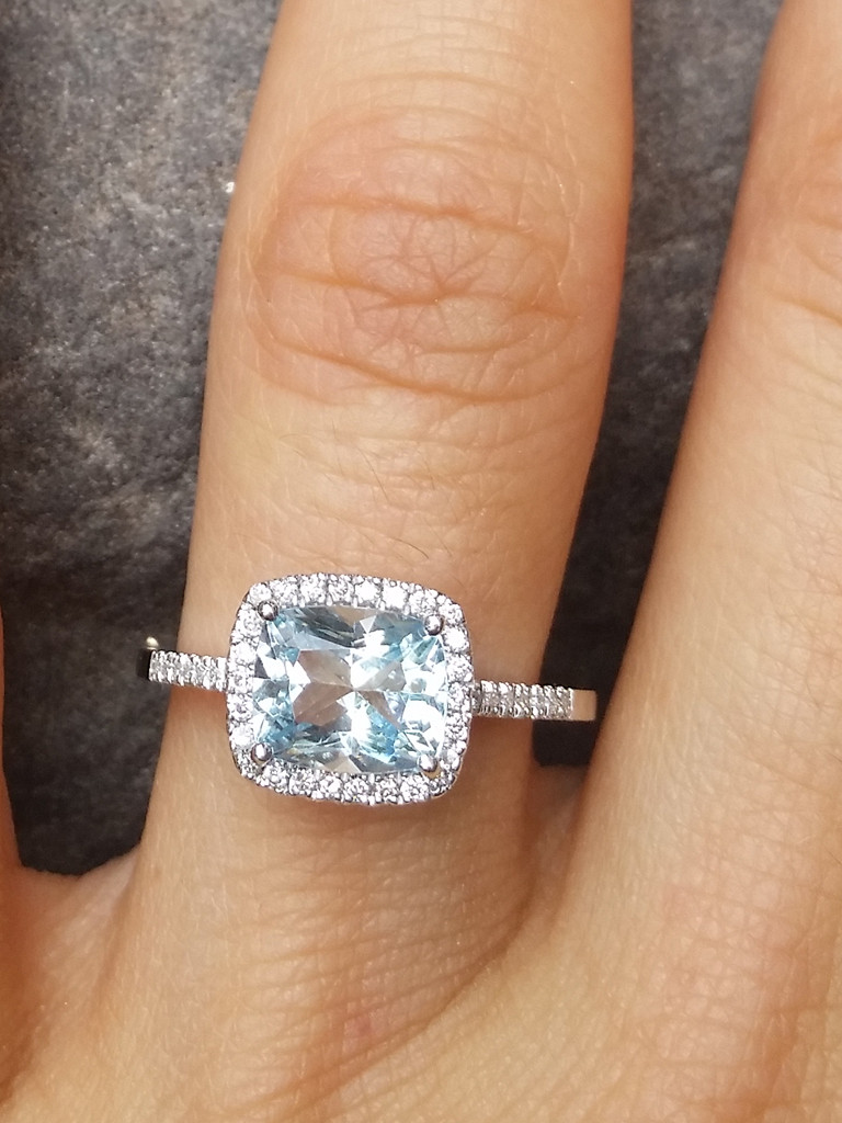 You can’t confuse a stone like aquamarine with anything. It is distinguished by its two-color.Modern women of fashion often choose rings with this mineral, as it has amazing overflows: from sea tones to natural green.