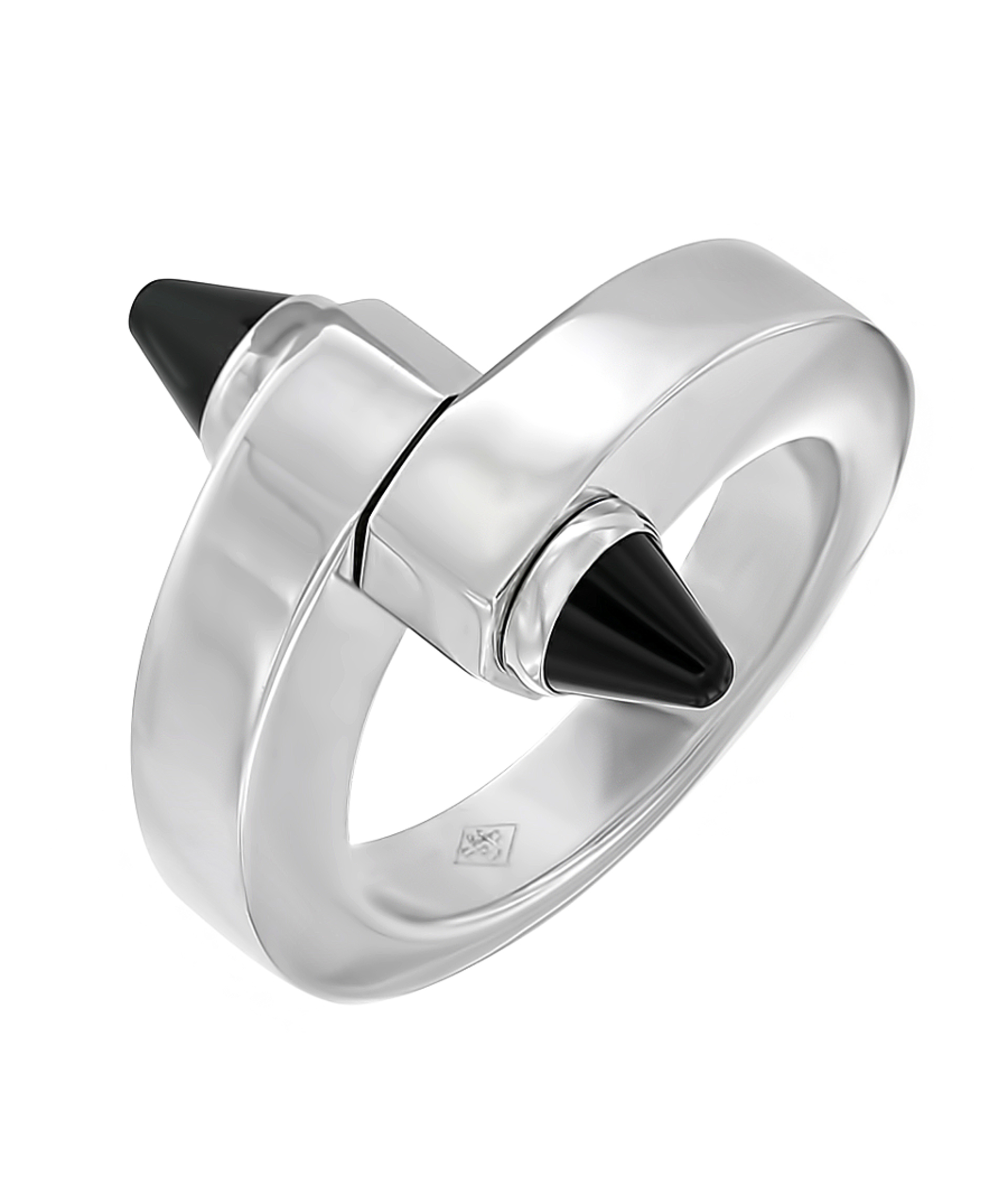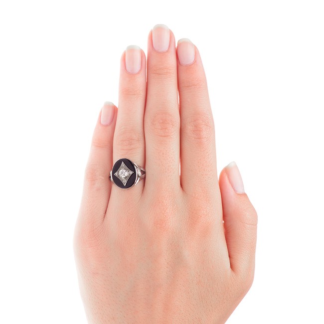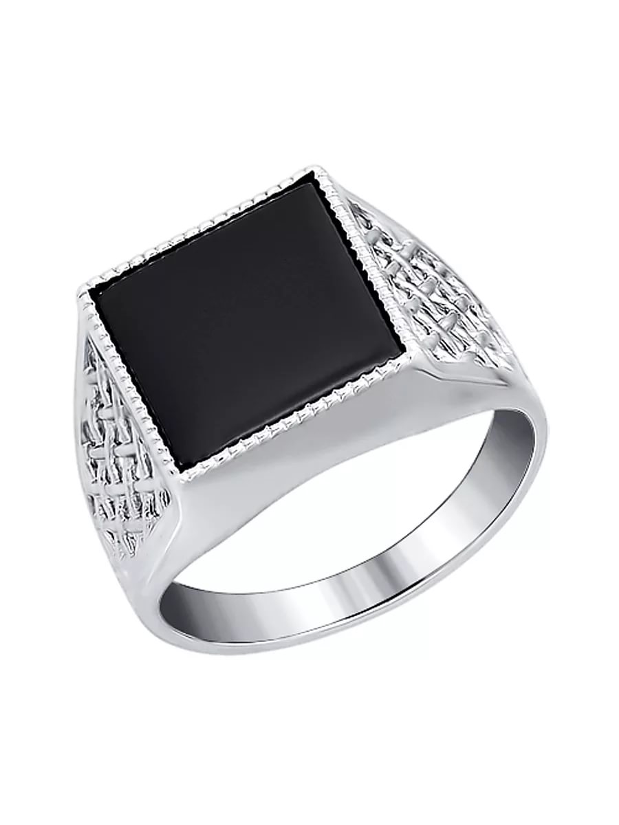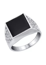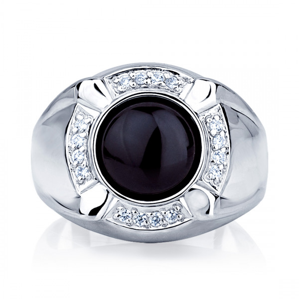 Onyx goes well with this metal. From the side it may seem that the ring is made of silver or white gold.