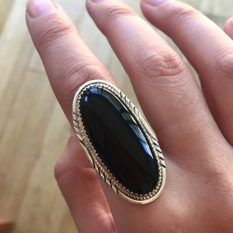 Onyx looks great in these rings. Silver products look very solid and mysterious.