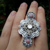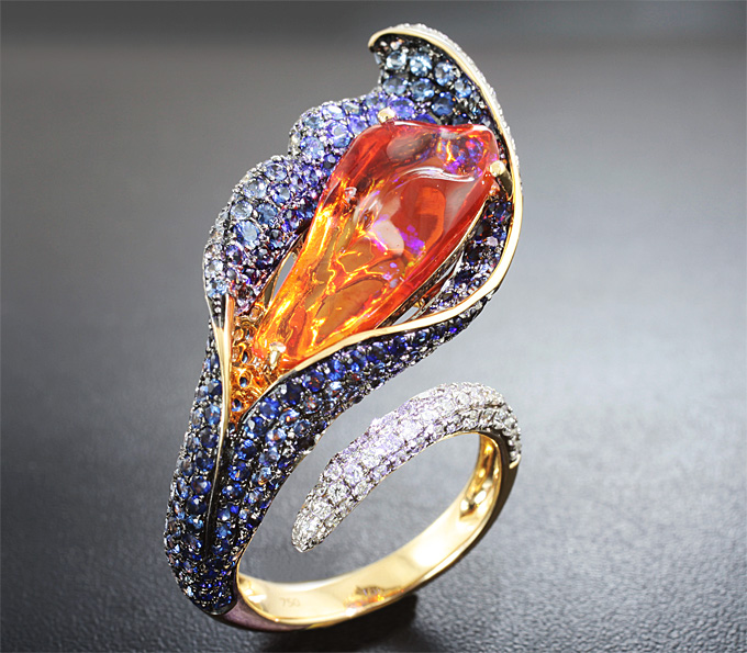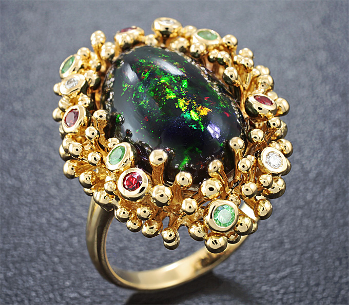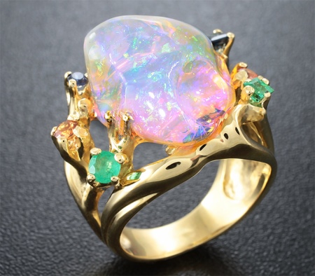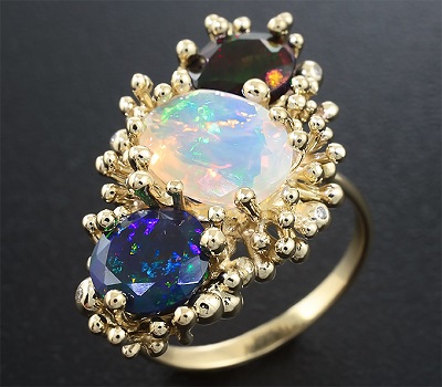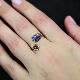 Popular today and accessories with two, three or more gems. They are distinguished by an interesting appearance that will not leave its owner without attention of others. Each stone can be a separate opal species. For example, it can be a magnificent ring with pink, black and Australian stone.