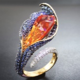 Designers of this brand add a mineral not only to the rings, but also to brooches and earrings. A stone in such instances can have not only a beautiful cut, but also be unprocessed, which makes it very original.