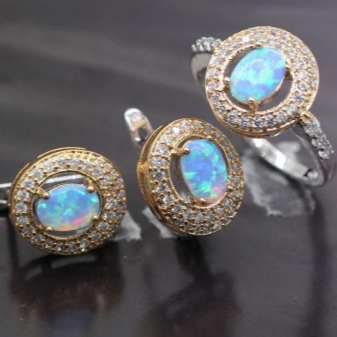 - Any kind of opal looks great in an ensemble with cubic zirconias. They may have completely different colors. The most popular today are jewelry, in which the natural mineral is complemented by blue and green cubic zirconias.