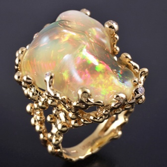 Currently, there are several types of opal in the homeland of the mineral. Among them are attractive milky and rare black gem. Rings with an Australian gem fall in love at first sight and they are often chosen by women of all ages.