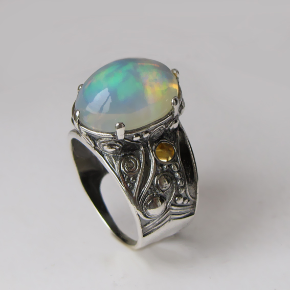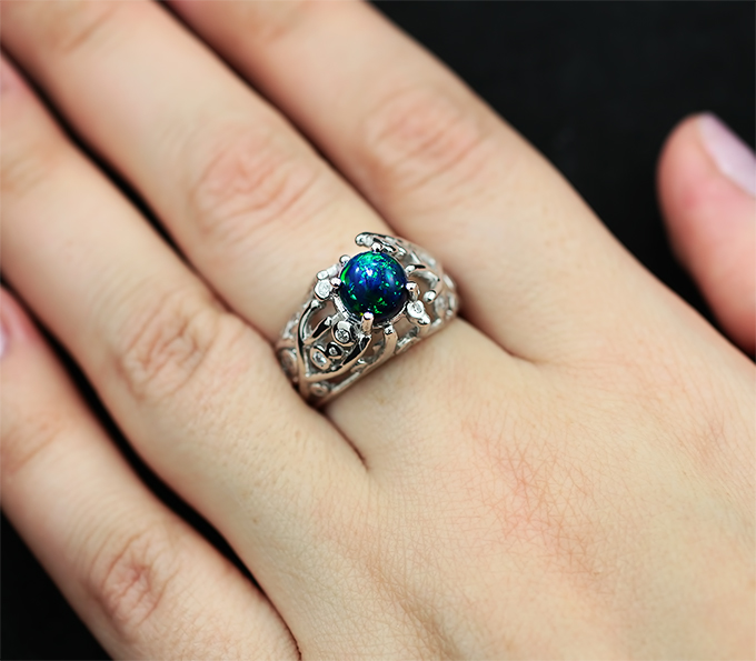 A ring with such an interesting mineral will serve you for a very long time if you treat it carefully. It is necessary to avoid shock and exposure to ultraviolet rays. Natural opal does not tolerate sudden changes in temperature. This may cause cracks.