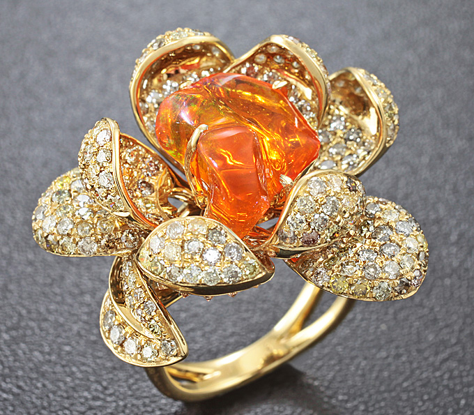 - Incredibly feminine and luxurious on the ladies look rings with opal and diamonds. Precious pebbles make products truly spectacular. They will be the perfect solution for ladies who love elegant and sophisticated images. But such instances will not differ low price.