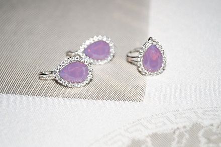 - The tandem of opal and Swarovski crystals looks no less harmonious. They give the jewelry a special shine, which will draw attention to the ring. Especially brightly and attractively similar specimens look on a sunny day.