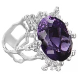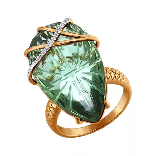 Most often large crystals are used to create jewelry masterpieces, because they are considered the most beautiful. Such stones are perfectly combined with gold or silver framing and surrounding of small transparent crystals. This ring looks really expensive and luxurious.