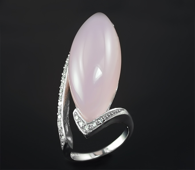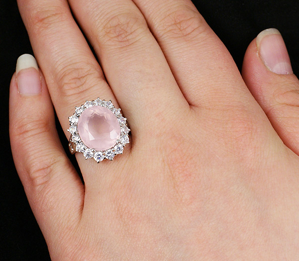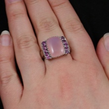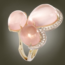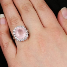 A wide range of shades of pink quartz with ease allows you to choose an individual option for women with different color of skin, eyes and hair. First of all, the ring with this stone is ideal for representatives of the summer color type. The warm pink pink quartz decoration looks great on delicate and fragile blondes with bright eyes.