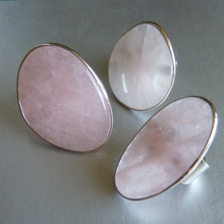Pink quartz looks equally good in gold or silver. The gold accessory looks more expensive and solid, and the silver rings are more subtle and delicate. These rings are perfect for complementing everyday look. Rings can be smooth or tracery.