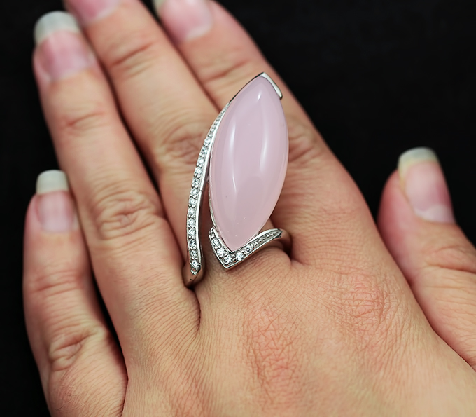 The rose quartz ring owes its healing properties to its popularity. Experts-lithotherapists claim that it can be used to remove puffiness, purify blood, help with diseases of the kidneys, pancreas, cardiovascular system, diabetes, gynecological problems.