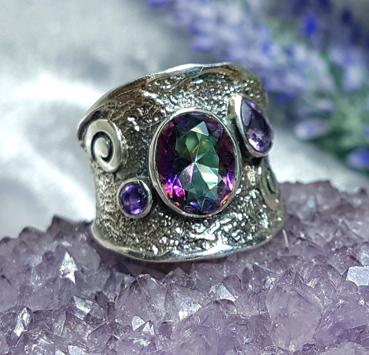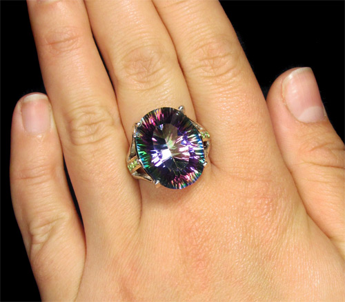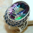Mystic Topaz. Processed by a special technology that forms a rainbow overflow. Unfortunately, like any artificially made stone, its attractiveness quickly disappears.