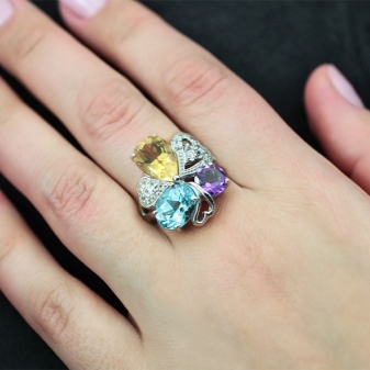 Models and forms of rings with a large number of topaz. In jewelry stores, you can find jewels with London topaz square or oval with steel or green shimmer. To attract attention, he also has the commercial name London Blue.