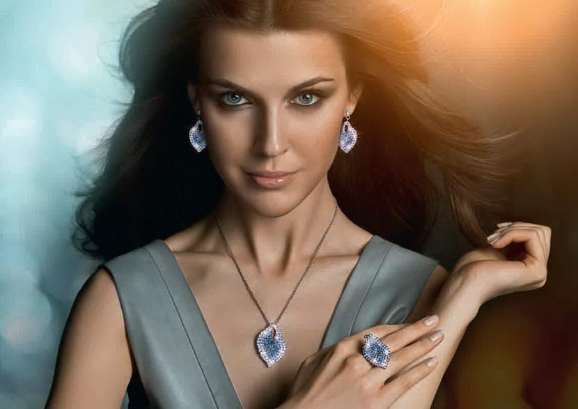 Topaz itself is a bright accent in any image and it draws all attention to itself. That is why it is preferably inscribed in evening and cocktail images.