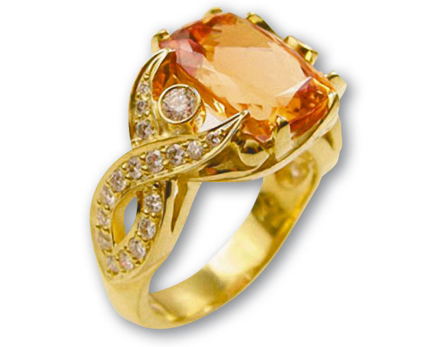 It is believed that topaz is the stone that will be able to decorate an engagement ring. It is combined with any gold frame and silver.