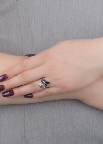 In order not to get lost in a wide variety, it is necessary to choose the style of the product. For lovers of the classics fit concise and discreet jewelry. Masters offer beautiful rings of silver, complemented by neat stones. To create a spectacular bow, jewelry with black cubic zirconias will be an excellent choice.