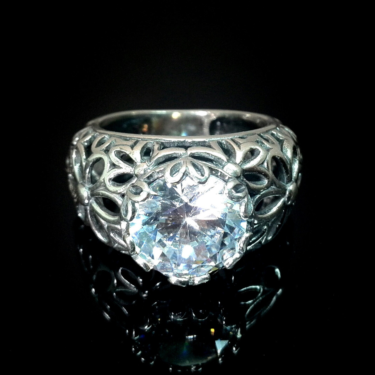 Experts have great opportunities for experimentation, since this stone is artificially bred. Silver rings with cubic zirconia can change their color depending on the types and sources of illumination.