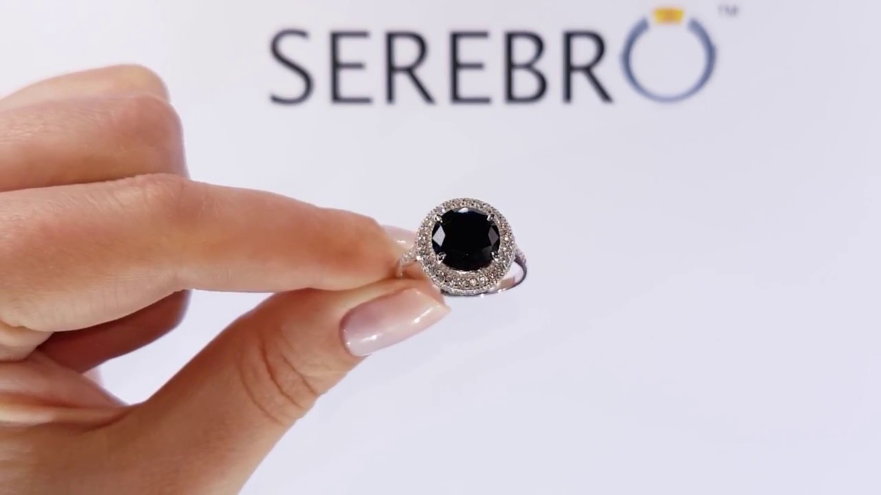 The ring with black cubic zirconias looks elegant and spectacular. The black stone resembles a carbonado or black diamond. This jewelry will give confidence in every fashionista. Black fianit is obtained as a result of heat treatment and without adding any dyes.
