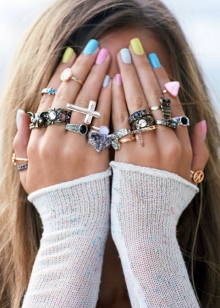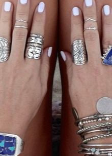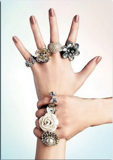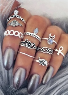 Large rings with a large stone — for example, rock crystal — look good on the thumb. Dial-ups are also a great idea, one only needs to distribute them correctly to other phalanxes. If you decide to decorate the thumb, then other accessories will be inappropriate.