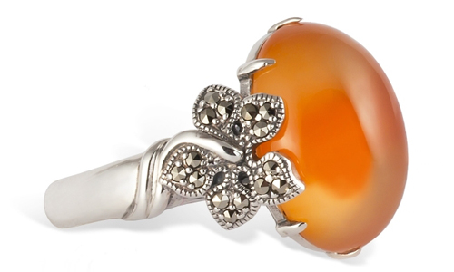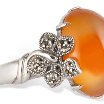 Carnelian gives the decoration a unique chic. If a woman has a burning appearance and bright wardrobe, then the ring with carnelian will ideally complement her evening dress.