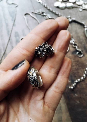 Rings have proven to be the most fearless - they can survive even long-term exposure to water and do not so often require cleaning as ordinary silver ones. They look more brilliant and bright, but when you buy, be sure to check the quality of the coating - it can be erased quickly.