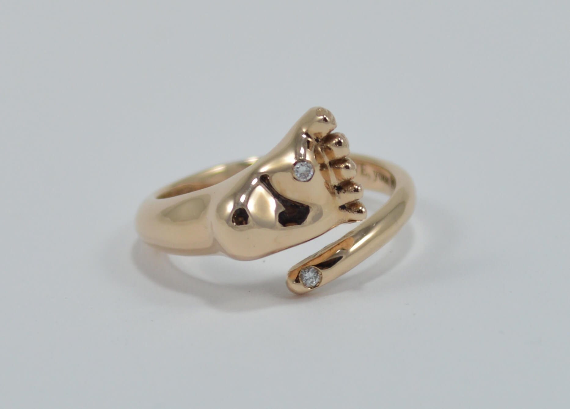 For a happy celebration - the birth of a baby, they often get rings with legs or palms of a baby. Elite jewelry boutiques offer exclusive handmade models that become an excellent gift for a young mother.