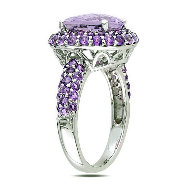 Amethyst - the eternal classic. Gentle and self-sufficient, he makes a great company of silver. Ring with this combination will suit a woman of any age.