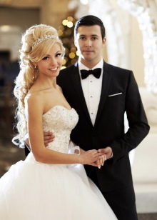 - Pick up the decoration is based on not only the taste of the future spouses, but also pay attention to their character. If the bride is a subtle and romantic nature, then it is worth considering more elegant options that are not overloaded with details. People who prefer rigor and conciseness, look more organic with rectangular and classical forms. Another important criterion is the constitution of the future spouse. Thinner and lighter models perfectly emphasize the slimness and sophistication of the figure. Massive products look good on larger people.