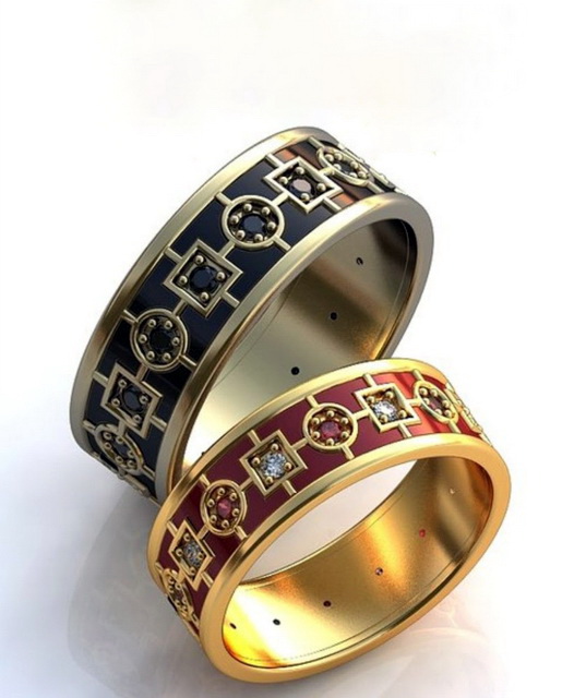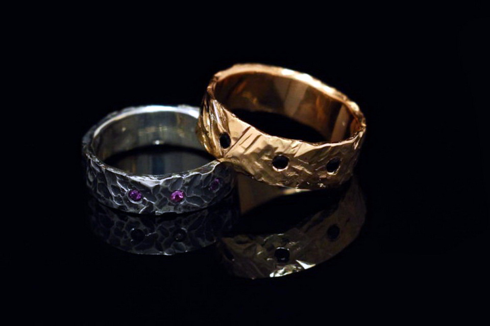 Not all are fans of classic smooth rings. And many people opt for diamond-edged models. This is jewelry with cuts on the surface. Masters create rings with unusual patterns and original ornaments.