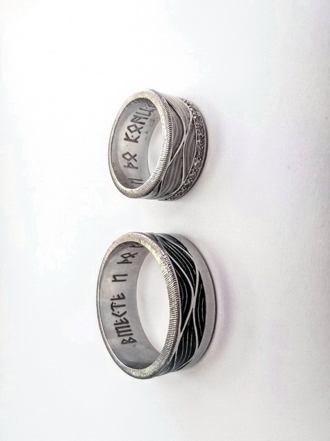 You can add individuality and uniqueness to your love symbols with engraving. It is applied both inside the product and outside. The name of the spouse, the symbol, the phrase uniting the spouses - all this adds even more importance to the marriage. Engraving can be done not only on the newly purchased products, but also on those that have been with you for years.