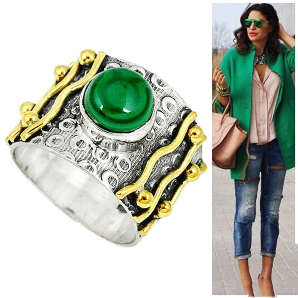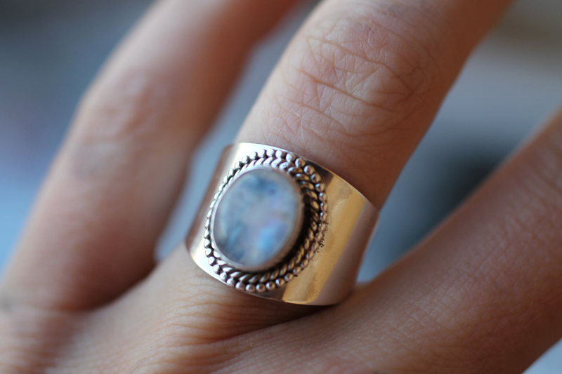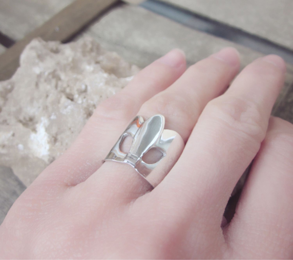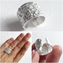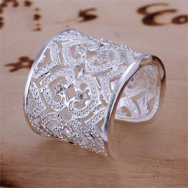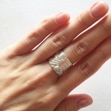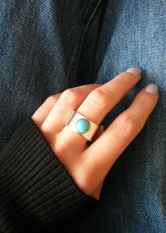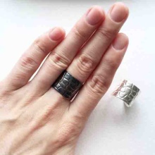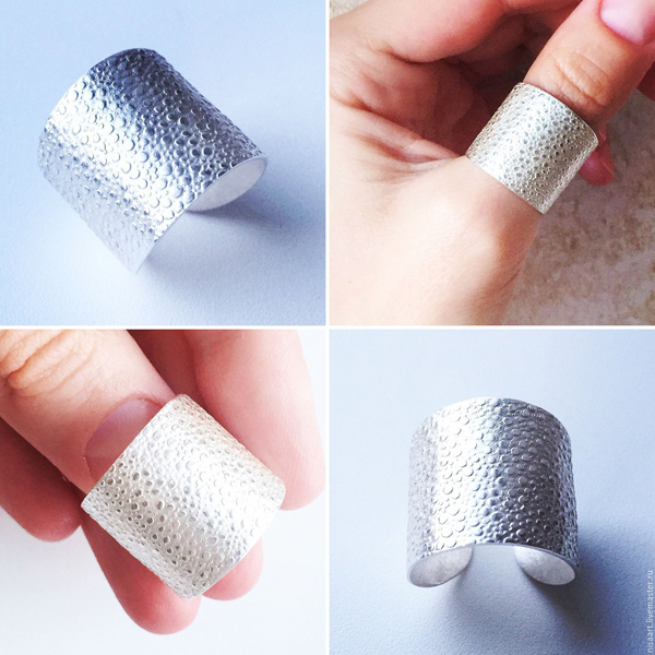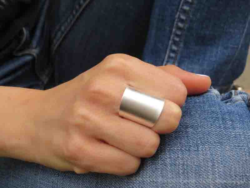 Wide and massive jewelry designed to give a woman individuality. Before you decide to buy a wide silver ring, evaluate your wardrobe. Does it have appropriate clothing in combination with large jewelery?