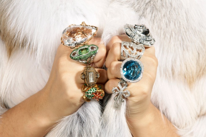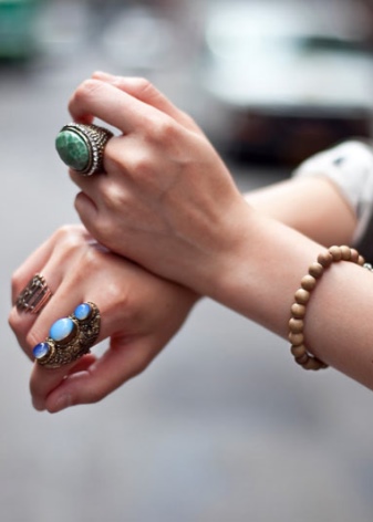 When combining several rings on one hand or in one image, make sure that they are combined with each other. In order not to look tasteless, do not combine gold and silver jewelry on one hand and the whole image.