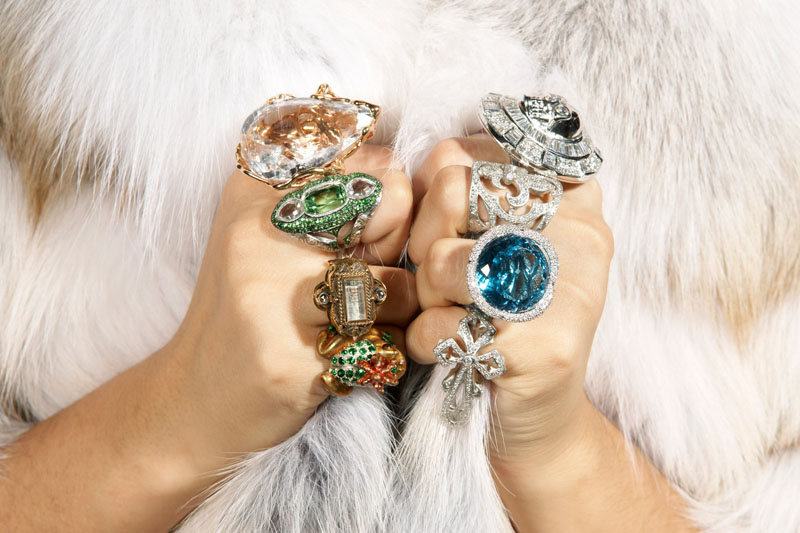 - Double or triple rings will be a stylish evening accessory. The only thing that the stylists warn about is not to make the image not vulgar, select a neutral discreet manicure for such massive decorations.