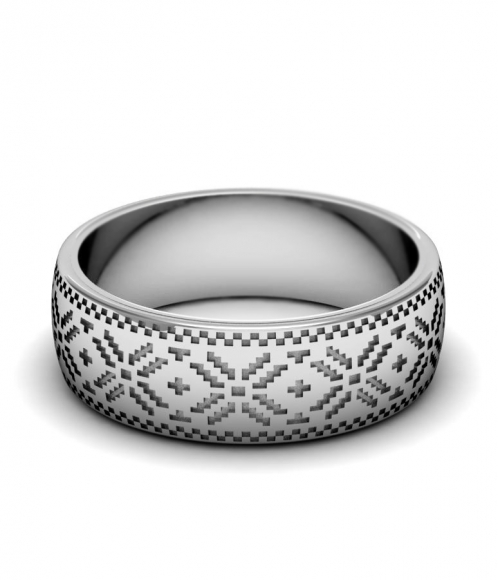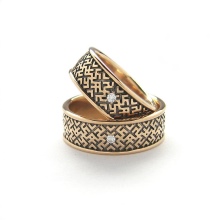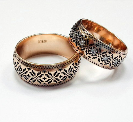 The most popular rings in the Slavic style are products made of white gold. They look like silver, but are durable.