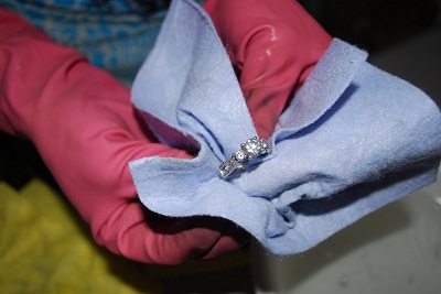 It is necessary to mix toothpaste, liquid ammonia, baking soda. Then this mass need to spread decoration. Finally wipe it off with a brush.