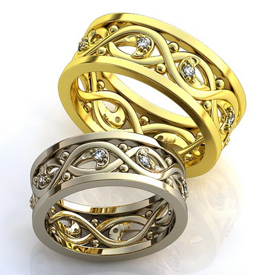 The rings began to acquire a new form - the silver metal was replaced with gold platinum silt, modesty and conciseness disappeared, jewelers began to insert precious stones into the jewelry.