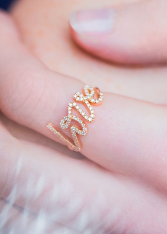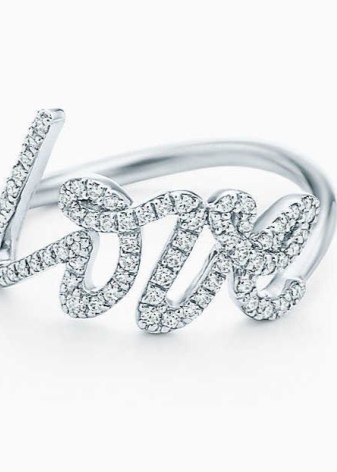 The most spectacular, but at the same time modest and elegant option will be a ring that seamlessly embodies the inscription Love. It traced underlined by Paloma Picasso. Designers found inspiration for this product in the numerous graffiti of New York, because even among the most awkward signatures and drawings, the theme of love and the desire of residents of this modern city to perpetuate it, even on the walls of buildings or various structures, was traced.