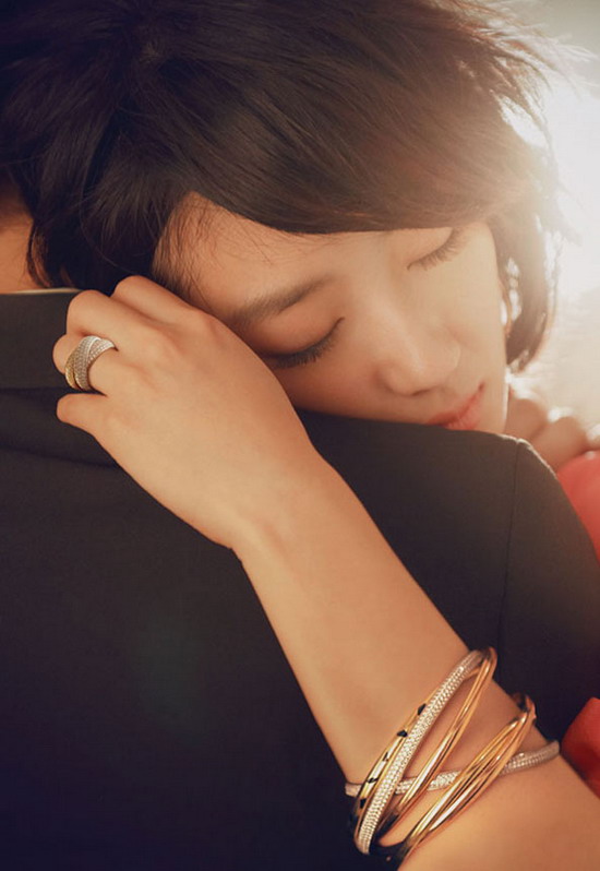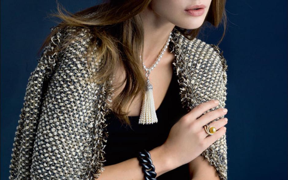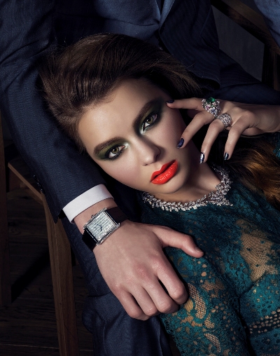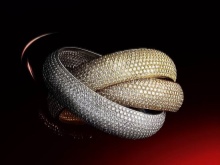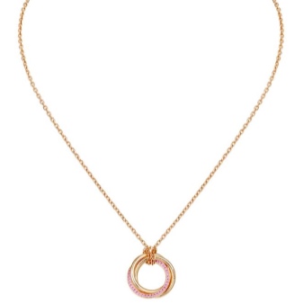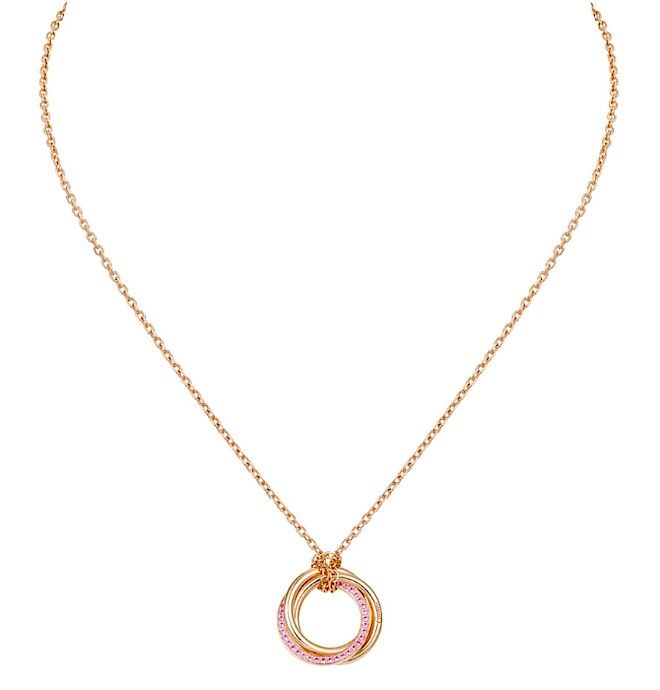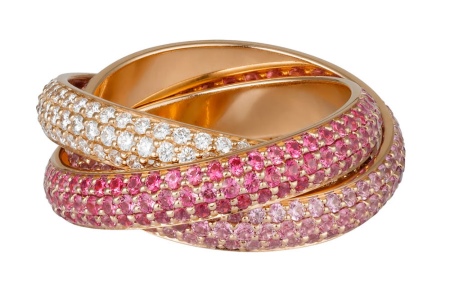 Trinity de Cartier, which combines rose gold with 90 sapphires, is suitable for creating a gentle and romantic look. The mass of all stones is about 0.9 carats.