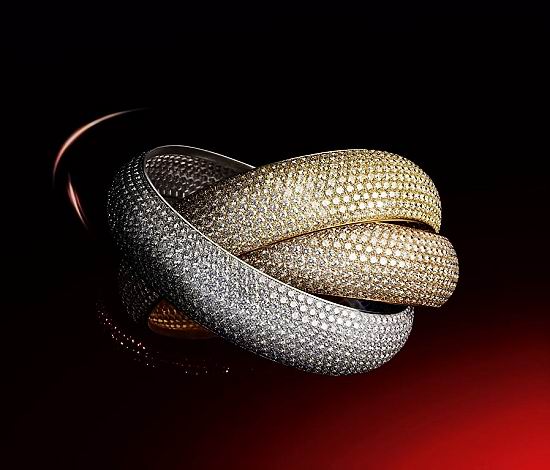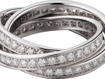 In addition to the actual rings, the Cartier collection has triple earrings, bracelets, necklaces and other accessories made in the same technique. In addition to gold, ceramics and platinum are used as materials for their manufacture. Products inlaid with all sorts of diamonds, aquamarine, sapphire and pearls.