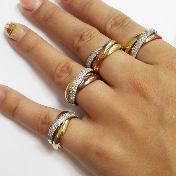 There is also a solid model, traditionally consisting of golden stripes of three colors, in the center of which a diamond sparkles.