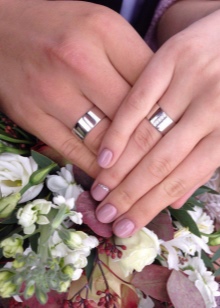 Wide models - one of the most classic options. These rings are perfect for girls with plump fingers. The product usually has the appearance of a wide flat rim, it is comfortable to wear and wear daily. Many wedding rings of this type are additionally decorated with small diamonds, nowadays there are no such strict rules as before. However, it must be remembered that the priest may refuse to conduct the ceremony if the ring is fussy or with large stones.