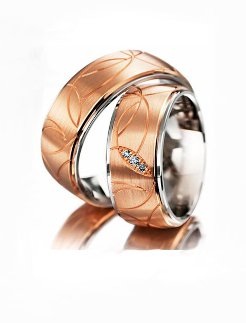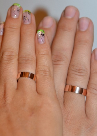 Such rings are a true symbol of the complete unity of the spouses. As well as wedding rings of this model, wedding products are an exact copy of each other, the difference is only in size. Sometimes paired jewelry is not exactly the same; only decor elements, material or form are the same.